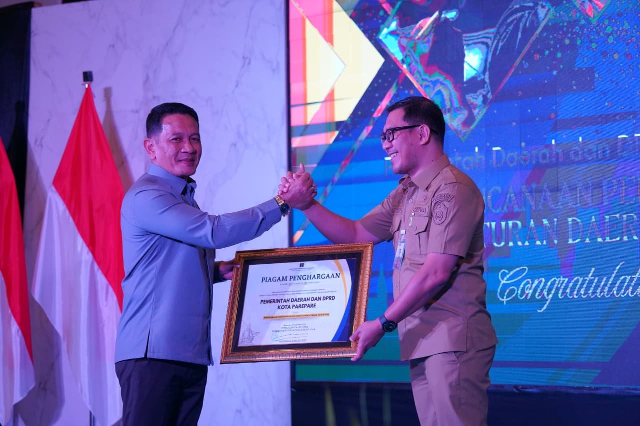 Penghargaan pertama diberikan kepada Pemkot Parepare dan DPRD Parepare sebagai daerah dengan Perencanaan Pembentukan Peraturan Daerah Terbaik Tahun 2025. Penghargaan ini menunjukkan proses legislasi di Parepare berjalan akuntabel, terukur, dan sesuai kebutuhan pembangunan kota. Penghargaan ini juga menegaskan sinergi pemerintah daerah dan DPRD dalam menghasilkan produk hukum yang berkualitas.