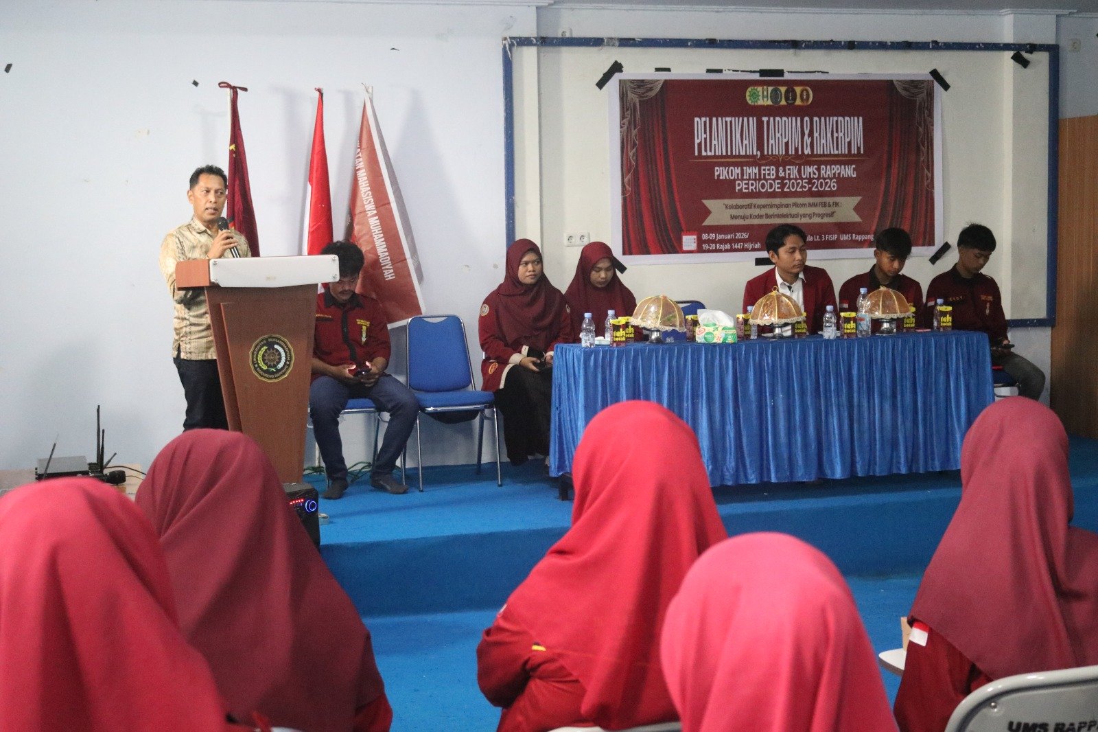 KOSONGSATUNEWS.COM, SIDRAP — Pergantian kepemimpinan Pimpinan Komisariat (PIKOM) Ikatan Mahasiswa Muhammadiyah (IMM) Fakultas Ekonomi dan Bisnis (FEB) serta Fakultas Ilmu Kesehatan (FIK) Universitas Muhammadiyah Sidenreng Rappang (UMS Rappang) resmi digelar melalui kegiatan Pelantikan dan Rapat Kerja Pimpinan (Rakerpim), Kamis (8/1/2025), di lantai 3 Gedung Fakultas Ilmu Sosial dan Ilmu Politik (FISIP) UMS Rappang.
