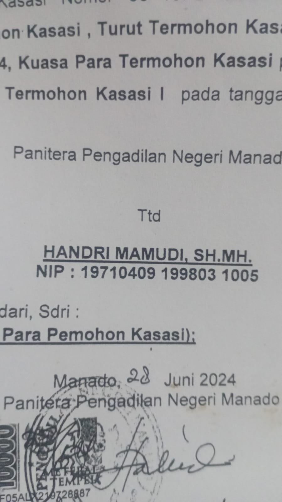 MANADO –, Salah satu Oknum Panitera yang pernah bertugas di PN Manado yakni Handri Mamudi SH.MH di duga kuat menjadi Mafia Peradilan saat bertugas di PN Manado. Ini terbukti dengan beberapa dokumen yang ditemukan wartawan media ini, sengaja di rekayasa oleh Handri Mamudi yang menurut info sekarang bertugas di PN Makasar.