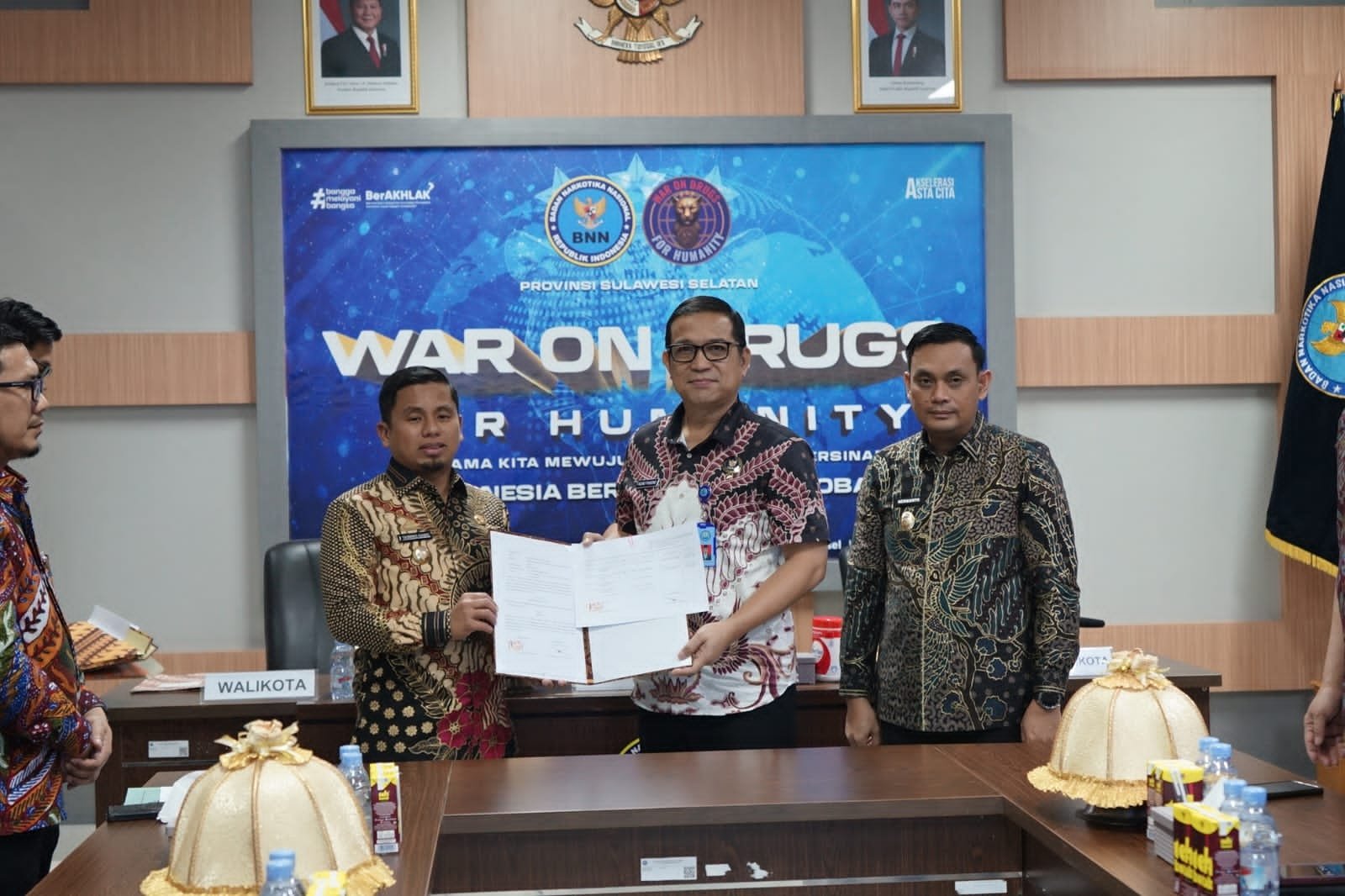 KOSONGSATUNEWS.COM, MAKASSAR – Wali Kota Parepare, Tasming Hamid, menandatangani Naskah Perjanjian Hibah Daerah antara Pemerintah Kota Parepare dan BNN Provinsi Sulawesi Selatan sebagai bagian dari persiapan pembentukan BNN Kota Parepare.