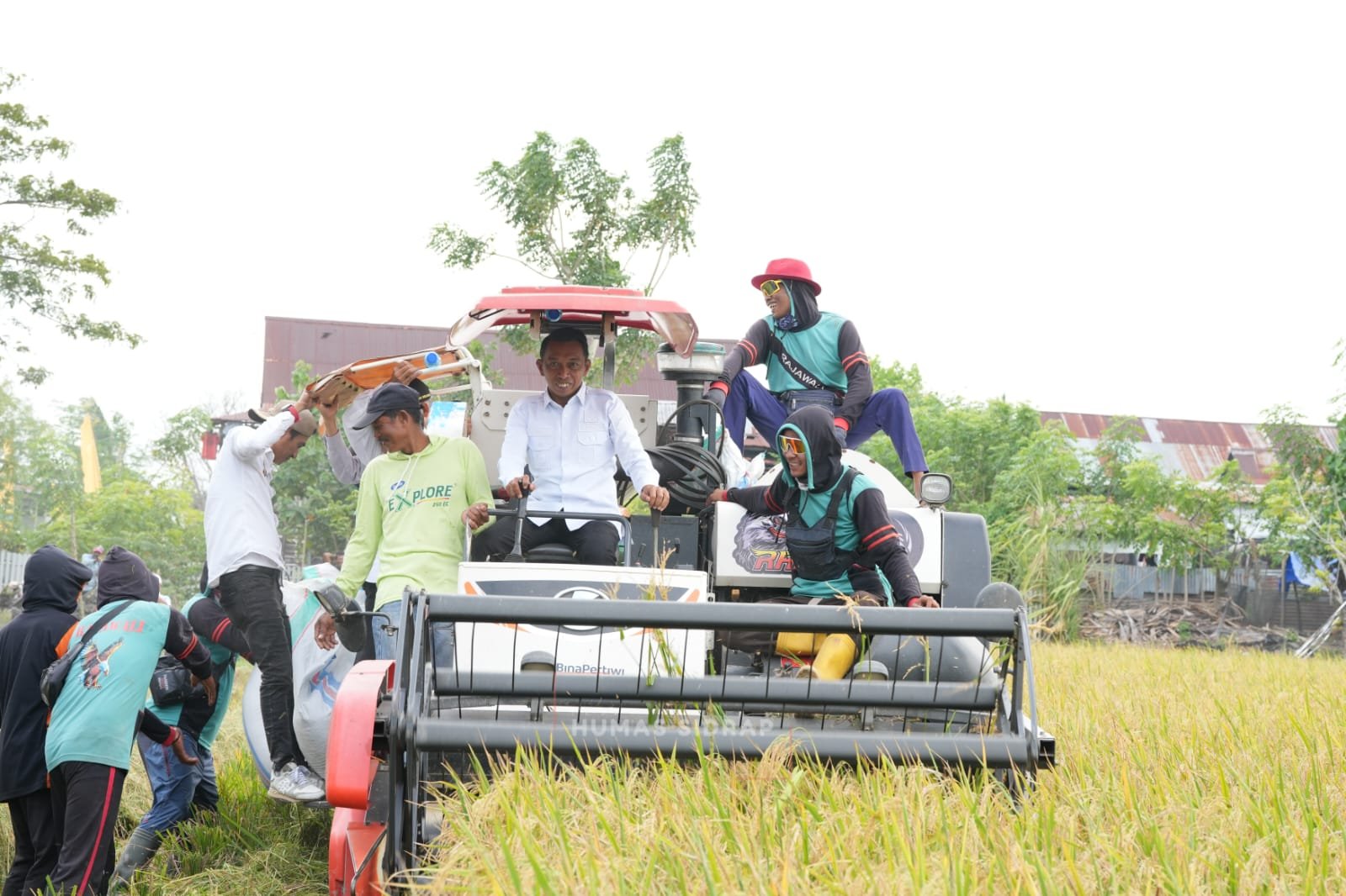 KOSONGSATUNEWS.COM, SIDRAP, –Bupati Sidenreng Rappang (Sidrap) Syaharuddin Alrif memimpin panen padi di dua lokasi berbeda dalam sehari, Rabu (11/3/2026).