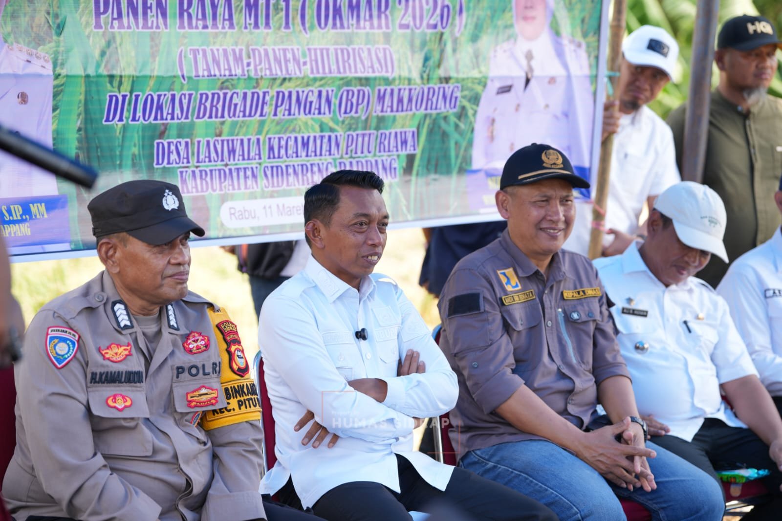 Panen dihadiri Kepala Dinas PSDA Andi Safari Renata, Camat Pitu Riawa Ali Husain, Kabid Tanaman Pangan Arif Gunawan Sukardin, Kabid Penyuluhan Muhammad Zainal bersama jajaran.
