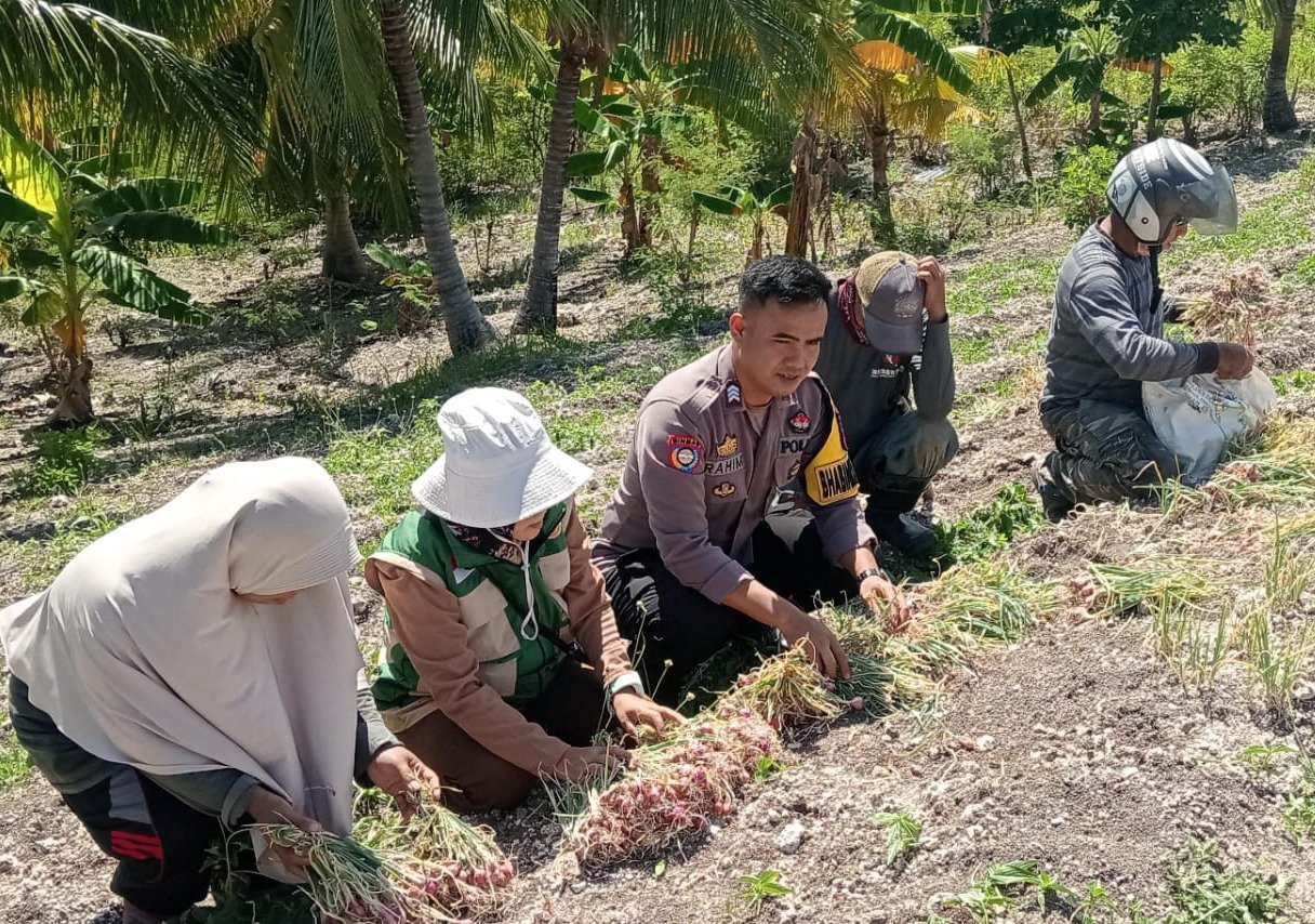Majene – Upaya mendukung program ketahanan pangan nasional terus digencarkan oleh jajaran kepolisian di wilayah Kabupaten Majene. Salah satunya ditunjukkan oleh Bhabinkamtibmas Polsek Banggae, Brigpol Abdul Rahim, yang turut ambil bagian dalam kegiatan panen bawang merah bersama warga binaannya.
