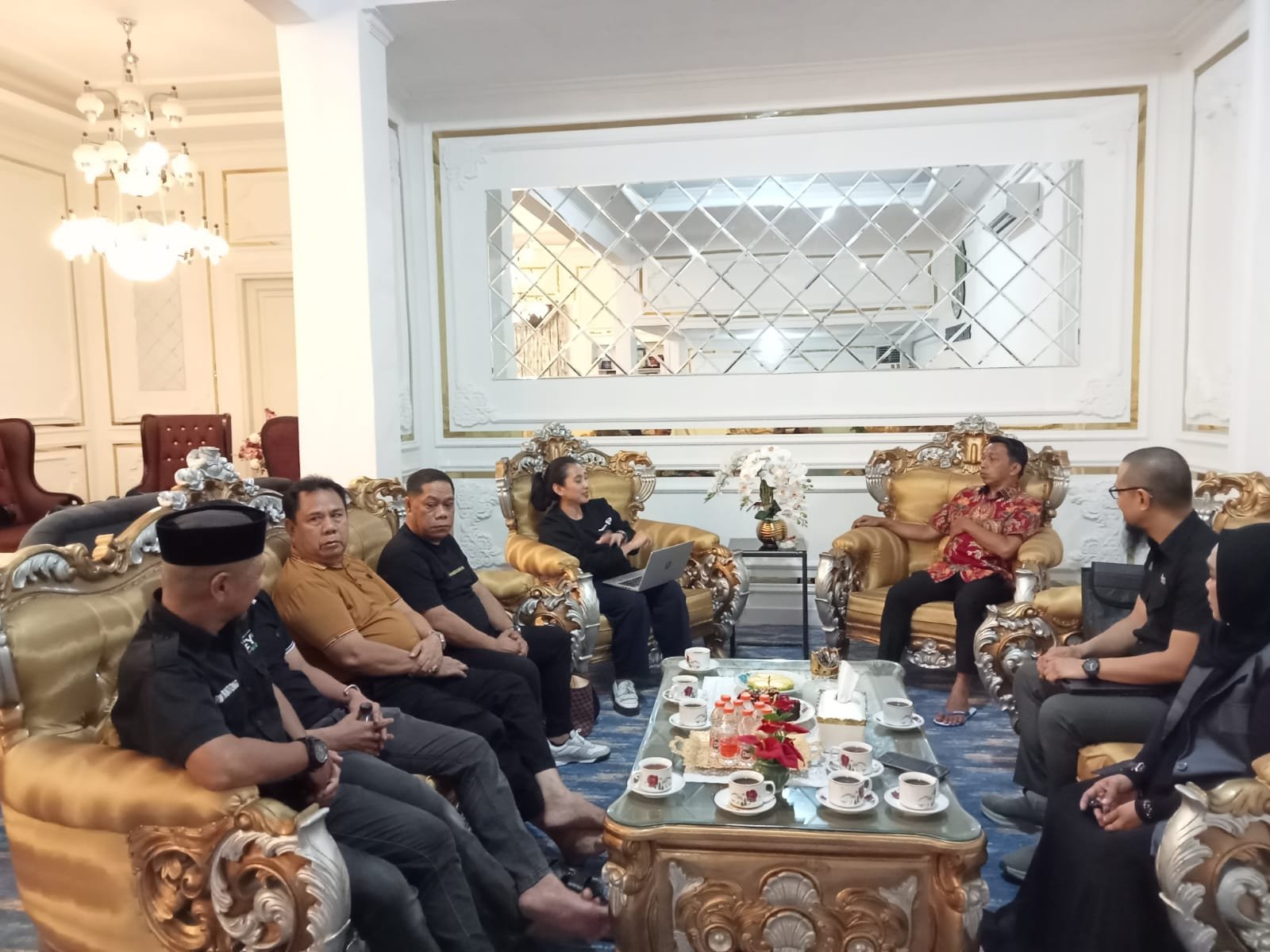 Kru jaringan televisi swasta yang belakangan diketahui bernama Ade dan Verno SP Nitiprodjo ini diterima langsung Bupati Sidrap, Syaharuddin Alrif.