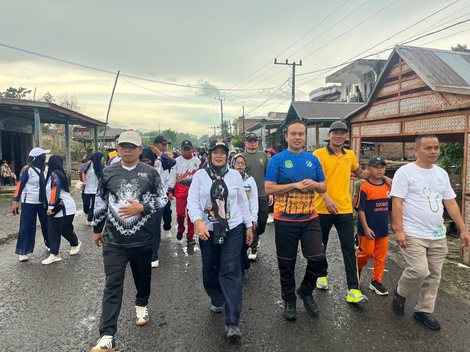 Para peserta memulai rute gerak jalan santai dari Polsek Pitu Riase dan berakhir di halaman Puskesmas Barukku.