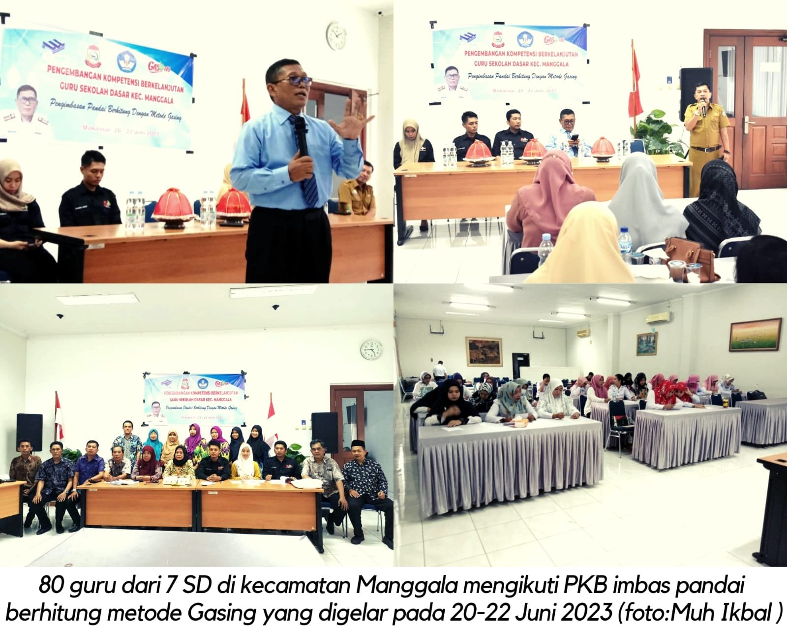 “Pelatihan imbas pandai berhitung dengan metode gasing juga dihadiri Kepala Dinas Pendidikan Kota Makassar, H. Muhyiddin, SE M.Si sekaligus membuka kegiatan PKB guru SD Se Kecamatan Manggala pada Selasa 20 Juni,” tulisnya.